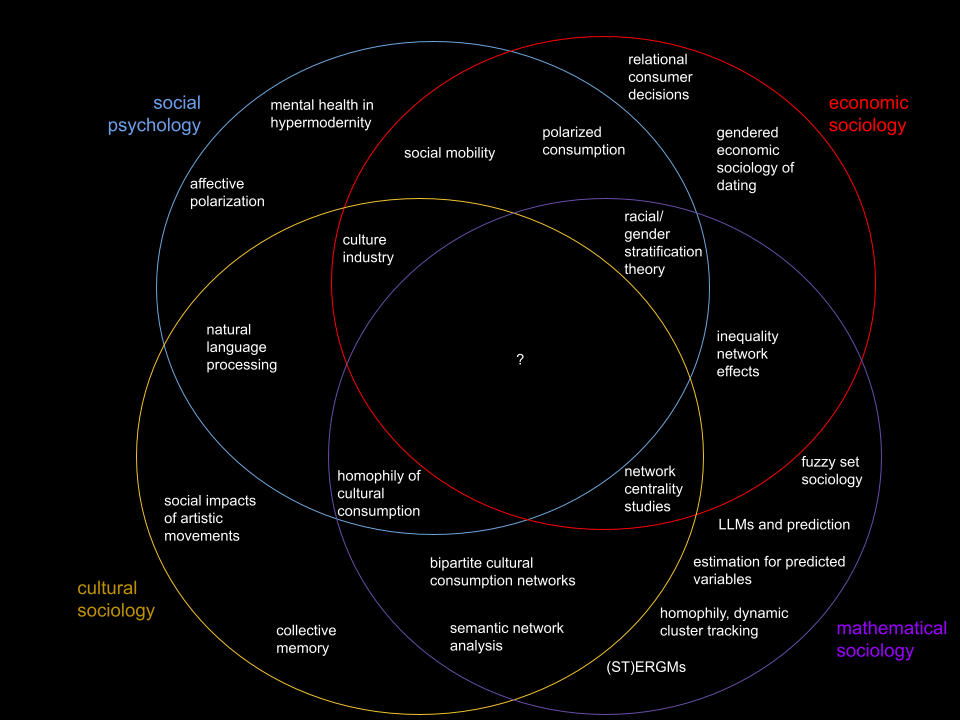 These are some of the research areas I am interested in. Obviously, much more lies within these intersections – please shoot me an email if you find sociological research where the question mark lies…